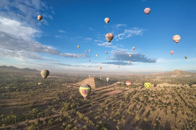Schwebe bei Sonnenaufgang im Heißluftballon über Teotihuacan, frühstücke in einer echten Höhle, koste lokale Spezialitäten und erkunde die alten Straßen mit einem erfahrenen Guide. Von der Abholung im Hotel in Mexiko-Stadt bis zum Sektempfang nach der Landung – hier ist alles perfekt organisiert, damit du diese unvergesslichen Momente voll genießen kannst.