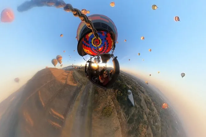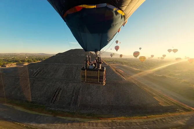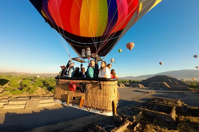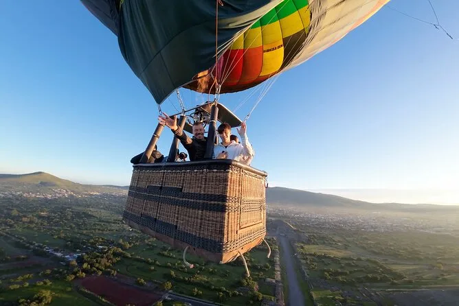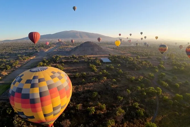 Dein Morgen beginnt mit einer optionalen Abholung in Mexiko-Stadt, bevor es nach Teotihuacan geht, wo du Kaffee bekommst und zu deinem geführten Heißluftballonflug über die Pyramiden startest. Nach der Landung erwartet dich ein reichhaltiges mexikanisches Frühstück in einer natürlichen unterirdischen Höhle mit Live-Tanzdarbietungen. Anschließend hast du Zeit, die Ruinen von Teotihuacan auf eigene Faust zu erkunden (Eintritt nicht inklusive).