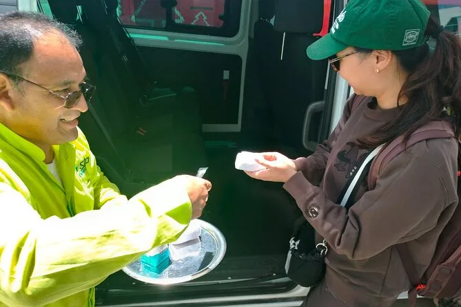Ja, jeder Fahrgast erhält eine Flasche Wasser und ein Feuchttuch.