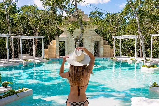 Schwebe beim Frühstück in einem sonnendurchfluteten Pool nahe Tulum, genieße Chilaquiles vom Chef und tauche ein in eine traditionelle Maya-Temazcal-Meditation mit Kräuterdüften und Vulkanhitze. Mit Abholung am Cenote Dos Ojos und viel Zeit zum Entspannen oder Erkunden heiliger Gewässer – dieser Tag macht dich leichter als beim Ankommen.