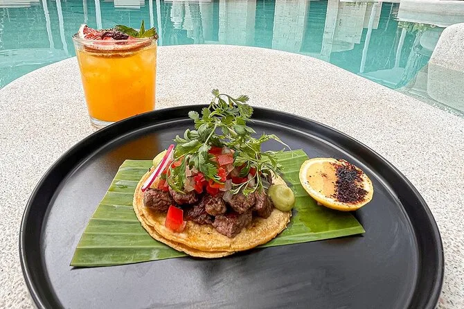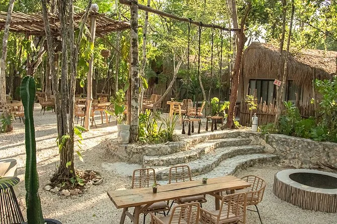 Dein Tag beinhaltet bei Bedarf die Abholung am Eingang des Cenote Dos Ojos, einen Willkommensdrink von lokalen Mixologen, Zugang zu den Gemeinschaftsbereichen von morgens bis abends, Chef Julios Gourmet-Frühstück im Pool (Eier nach Wunsch, regionale Chilaquiles, Bohnen, frisches Obst mit Bagel-Brot), Kaffee oder Tee nach Wahl sowie eine geführte 20-25-minütige Temazcal-Meditation im Dschungel, bevor du zurückkehrst, wann immer du möchtest.