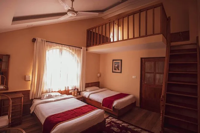 Deine Tage beinhalten die Abholung vom Buspark oder Flughafentransfer zwischen Kathmandu und Chitwan mit dem Touristenbus, alle Eintrittsgelder für den Nationalpark, zwei Übernachtungen in einem komfortablen Resort mit Vollverpflegung – von Frühstück bis Abendessen – sowie geführte Aktivitäten wie Kanufahrten auf dem Rapti, Dorfspaziergänge durch Tharu-Siedlungen, Jeep-Safaris tief in die Wildnis und abendliche Tanzshows mit Einheimischen, bevor es jeden Abend zurück zum Ausruhen geht, um für den nächsten Tag voller Abenteuer fit zu sein.