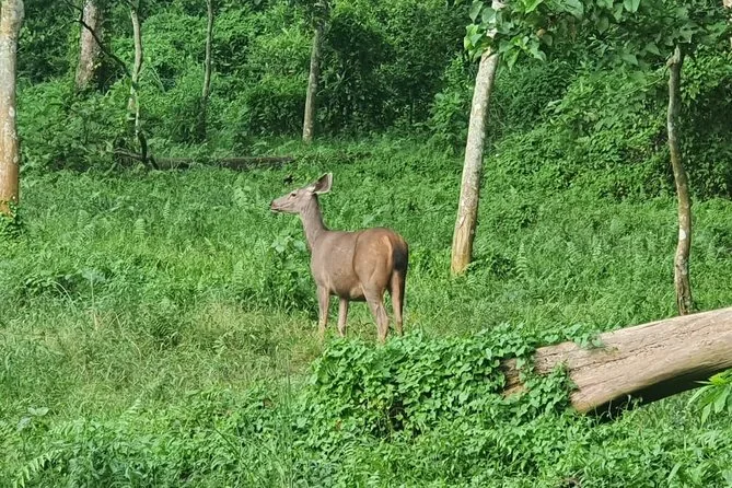Du kannst Nashörner, verschiedene Hirscharten, Wildschweine, Affen, Leoparden, Lippenbären und vielleicht sogar den Königstiger entdecken.