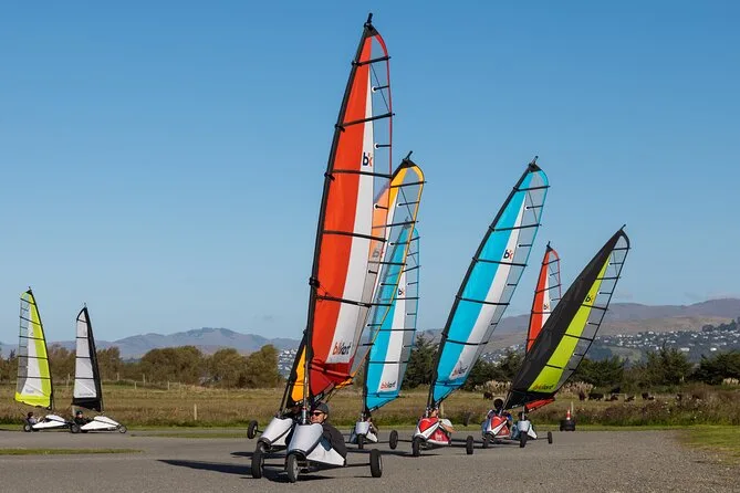 Dein Tag beinhaltet Hin- und Rückfahrt im klimatisierten Fahrzeug von zentral Christchurch oder Hafen Lyttelton, alle nötigen Ausrüstungen wie Helme und Handschuhe in deiner Größe, einen freundlichen lokalen Guide (meist Ian) sowie eine ausführliche Einweisung vor etwa 45 Minuten Blokart Landsailing auf einer eigenen Strecke – mit der Möglichkeit, vor der Rückfahrt elektrische Drift-Trikes auszuprobieren, wenn du Lust hast.