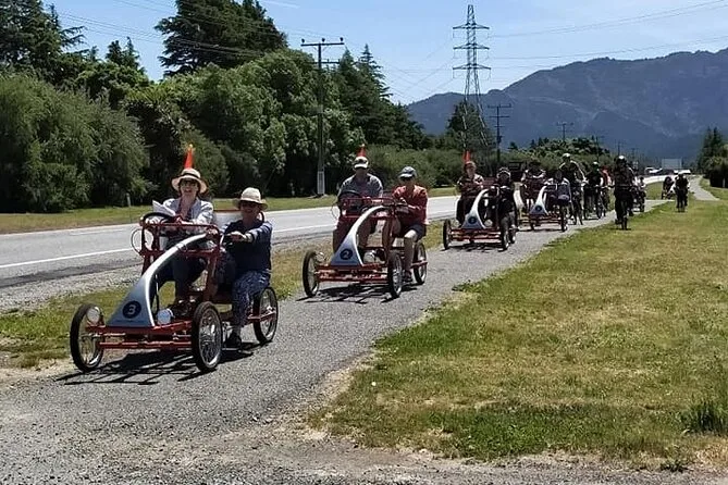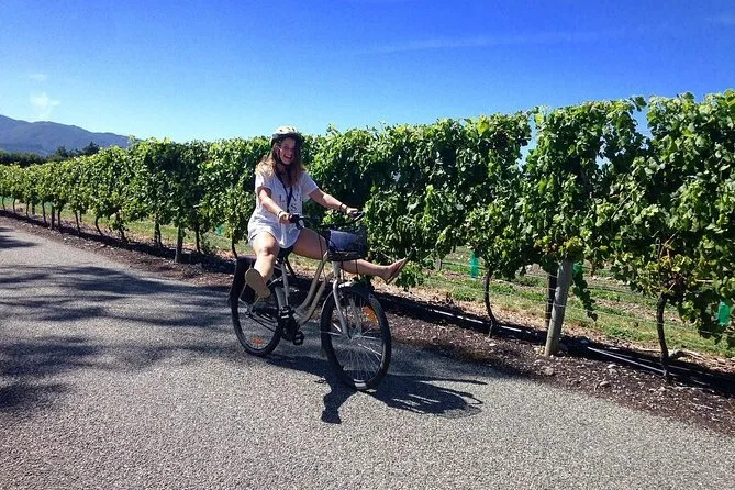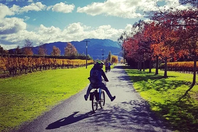 Dein Tag beginnt in Renwick mit herzlichen Gastgebern, die dich auf bequeme Räder mit Wein-Taschen setzen und dir Tipps für deine individuelle Keller-Tour geben. Probiere lokale Weine, genieße Käseplatten in der Sonne und entspanne dich – mit dem guten Gefühl, dass immer jemand zur Hilfe kommt, wenn du sie brauchst. Mehr Freiheit als Tour, genau die richtige Unterstützung.