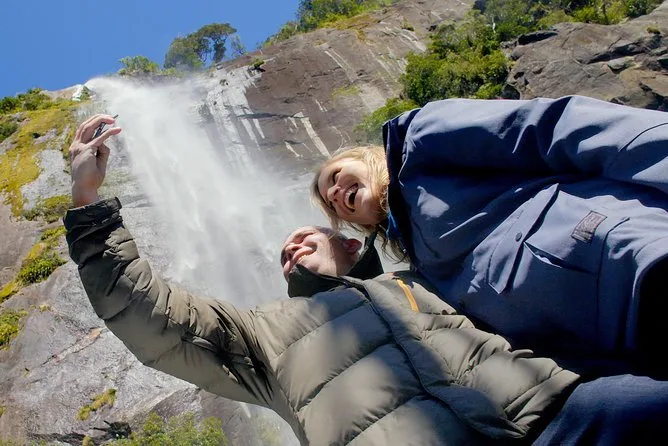 Die Fahrt selbst war… irgendwie friedlich, würde ich sagen. Keine drängelnden Menschenmassen, nur vielleicht dreißig bis vierzig Leute verteilt auf dem Boot. Pete zeigte auf den Mitre Peak, als wir vorbeiglitten – der sieht wirklich aus, als hätte jemand mitten im Nebel eine Pyramide aufgestellt. Überall Wasserfälle, manche so dünn, dass sie wie silberne Fäden am schwarzen Fels hingen. Bei Sterling Falls kamen wir so nah, dass der Sprühnebel mein Gesicht traf (sie nennen das „Gletscher-Gesichtsbehandlung“ – ich weiß nicht, ob ich’s mochte, aber es hat mich definitiv wachgerüttelt). Ich wollte ein Selfie machen und hatte am Ende Wasserflecken auf der Linse.