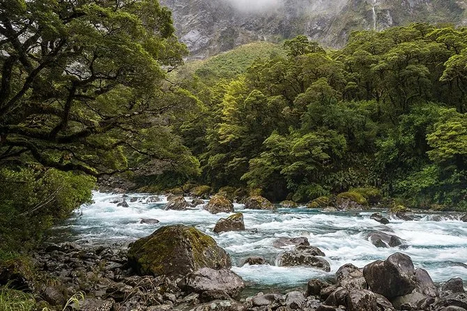 • Vorbeifahrt am Hollyford River und Falls Creek