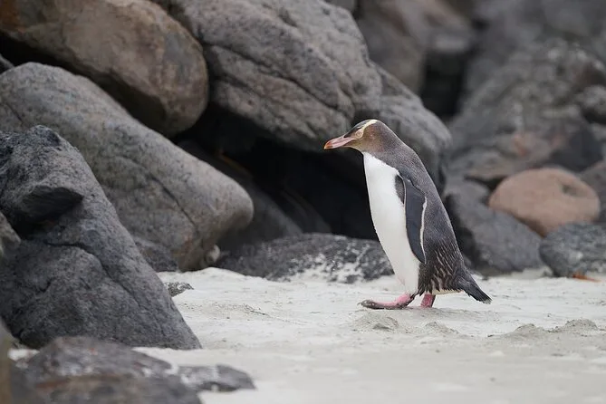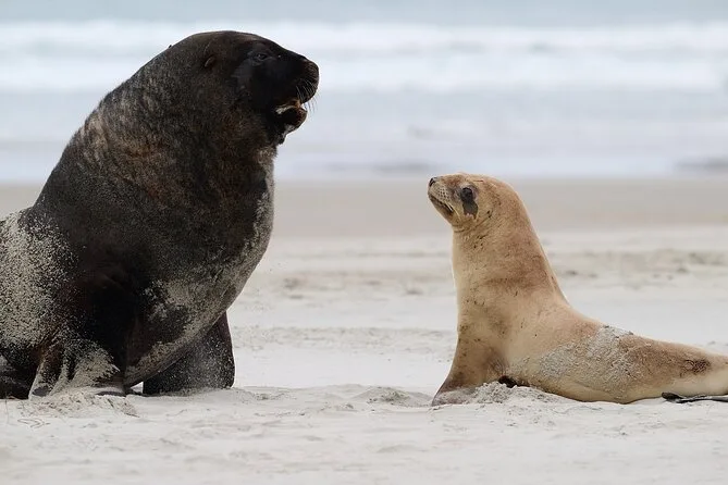 Dein Tag beinhaltet die Abholung in Dunedin mit klimatisiertem Fahrzeug, die Nutzung hochwertiger Ferngläser zum Entdecken der Tierwelt an den privaten Stränden und Schutzgebieten von Cape Saunders, kostenlose wind- und regenfeste Jacken (glaub mir – die brauchst du), sowie Wasser und Kekse an Bord, bevor du nach vier Stunden draußen zum Startpunkt zurückkehrst.