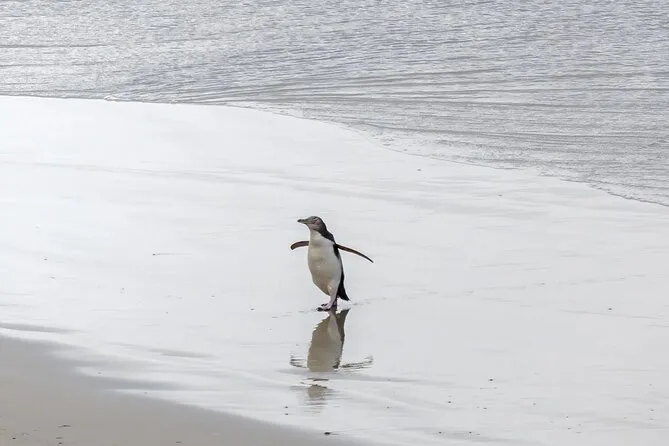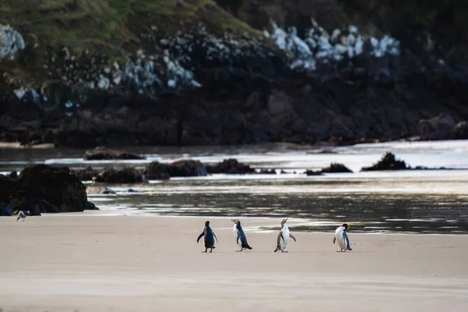 Begleite eine kleine Gruppe und erkunde die Cape Saunders Farm auf der Otago Peninsula – wandere vorbei an Schafen und wilden Küstenabschnitten mit einem einheimischen Guide, der jeden Vogelruf auswendig kennt. Beobachte Seebären auf den Felsen, suche Gelbaugenpinguine aus versteckten Verstecken und spüre die Gischt an einem privaten Strand. Hier gibt’s keine Inszenierung, nur pure Natur und echte Momente, die dir lange im Gedächtnis bleiben.