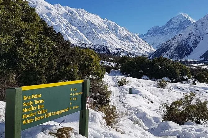Ja, du hast etwa 2,5 bis 3 Stunden für Wanderungen wie zum Kea Point oder Tasman Glacier View; ein Teil des Hooker Valley Tracks ist aktuell hinter dem Müller Lookout gesperrt.