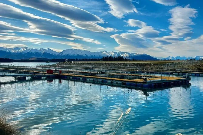 Auf der Rückfahrt machten wir Halt bei High Country Salmon – die Fische zu füttern ist irgendwie beruhigend nach einem Tag in den Bergen (der Geruch bleibt aber an den Fingern). Jemand kaufte Fruchteis bei Jacksons Orchard und reichte es herum. Als wir wieder in Queenstown ankamen, waren alle ruhiger – vielleicht müde oder einfach voll neuer Eindrücke. Dieses erste Bild von Mt Cook mit dem blauen See vor Augen geht mir seitdem bei jedem Foto mit blauen Seen nicht mehr aus dem Kopf.