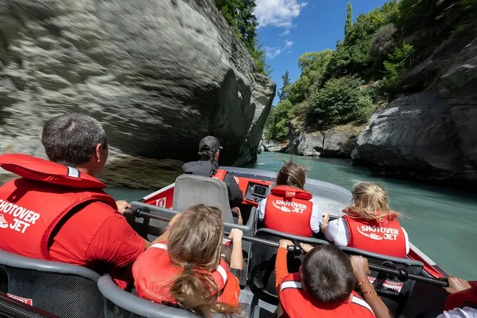 Dein Abenteuer umfasst eine rasante Jetbootfahrt durch die exklusiven Shotover Canyons mit erfahrenen lokalen Fahrern, die unterwegs Geschichten erzählen; volle 360-Grad-Drehungen; komplette Sicherheitsausrüstung inklusive Schwimmwesten; Zugang zu Fotos und Videos danach; kostenlose Parkplätze vor Ort oder optionaler Shuttle ab Queenstown; sowie sichere Schließfächer für deine Sachen während der Tour.
