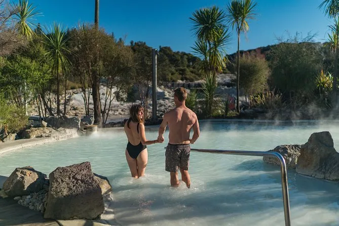 Dein Besuch umfasst den Eintritt zum Hell’s Gate Geothermal Park mit einer geführten oder selbstgeführten Wanderung durch dampfende Landschaften, einen kostenlosen Māori Schnitzkurs in der Werkstatt sowie Zeit zum Entspannen in geothermischen Schlamm- und Schwefelbädern – danach fühlst du dich leichter als beim Kommen.