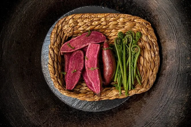 Dein Abend beinhaltet die Hin- und Rückfahrt vom zentralen Treffpunkt in Rotorua zum Dorf Te Pā Tū, eine traditionelle Māori-Begrüßung und Aufführung im Wald, indigene Häppchen und ein saisonales 3-Gänge-Fusionsmenü – mit viel Zeit für Geschichten und Gespräche, bevor es nachts zurückgeht.