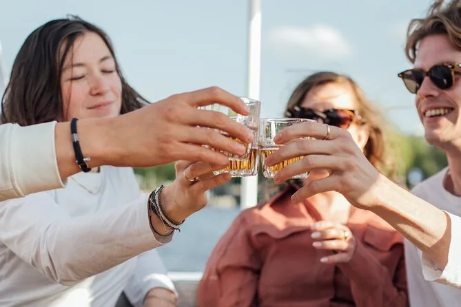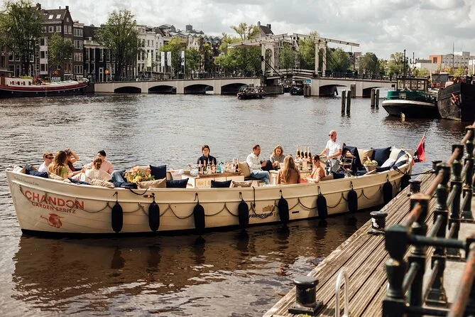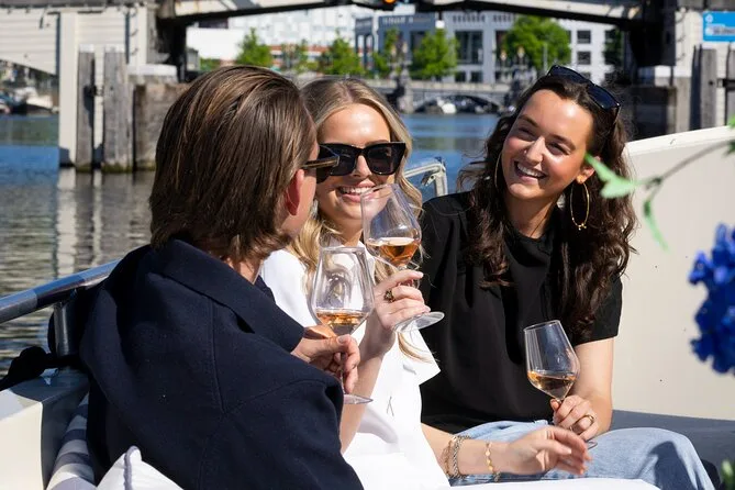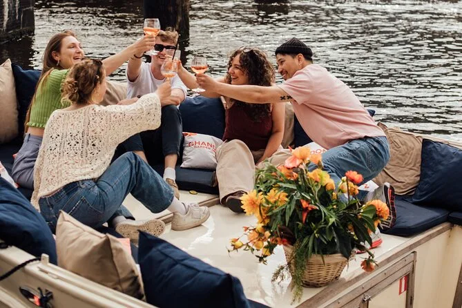 Dein Tag beinhaltet eine luxuriöse Bootsfahrt durch Amsterdams Kanäle mit unbegrenzten Cocktails und Snacks, serviert von deiner Gastgeberin. Ein Guide begleitet dich mit Live-Kommentar zu Sehenswürdigkeiten wie der Magere Brug und der Alten Kirche. Für kühle Momente gibt es Decken an Bord, bevor du zum Startpunkt mit guter Anbindung an den Nahverkehr zurückkehrst.