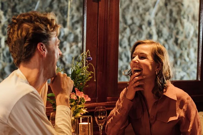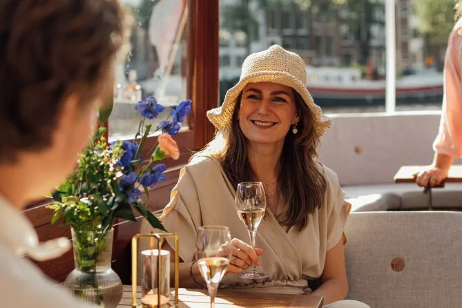 Ich hätte nie gedacht, dass die Stadt vom Wasser aus so anders wirkt. Als Erstes fiel mir auf, wie die alten Häuser sich über uns neigten, ihre Spiegelbilder im Kanal leicht wackelnd. Unser Kapitän winkte einem anderen Boot zu – hier schien jeder jeden zu kennen. Die Luft roch leicht nach Regen und etwas Süßem aus einer nahegelegenen Bäckerei. Ich hielt mein Glas fest (unbegrenzt Cocktails, was irgendwie verlockend und großzügig zugleich war) und versuchte, nichts zu verschütten, als wir unter der Magere Brug hindurchfuhren. Jemand erzählte, Paare, die sich dort küssen, bleiben für immer zusammen – das brachte uns alle zum Lachen, sogar die Gastgeberin rollte mit den Augen, lächelte aber trotzdem.