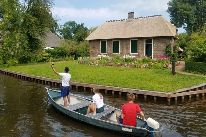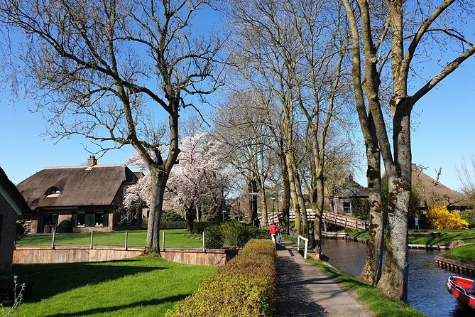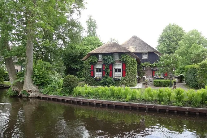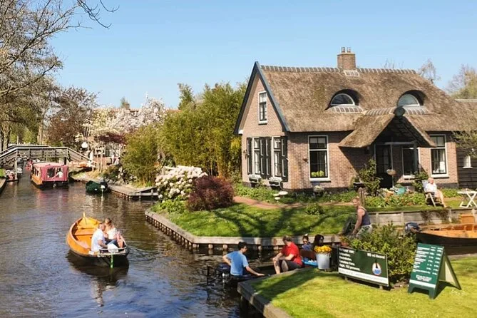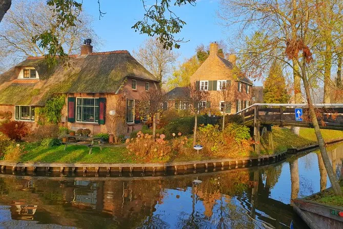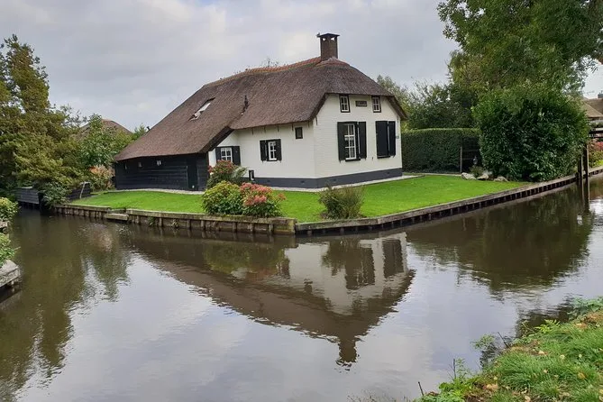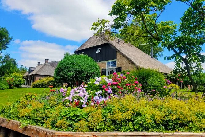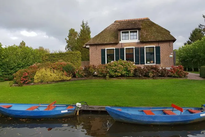 Dein Tag beinhaltet den Hin- und Rücktransfer ab Amsterdam im klimatisierten Minivan oder Bus, eine einstündige Bootsfahrt, bei der du selbst durch Giethoorns Kanäle steuerst, einen geführten Dorfrundgang über Brücken und kleine Wege sowie eine Käseverkostung auf einem der größten Bauernhöfe der Niederlande – alles begleitet von einem sympathischen lokalen Guide, bevor es gemeinsam zurück nach Amsterdam geht.