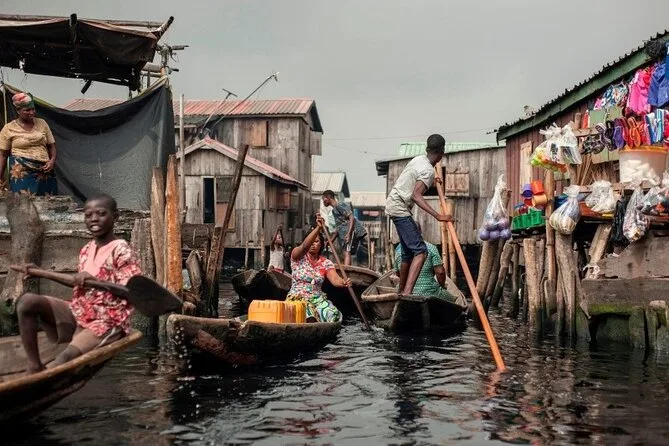 Du paddelst mit einem lokalen Guide durch das schwimmende Dorf Makoko, besuchst das Haus des Baale und die Grundschule und erlebst das tägliche Leben auf dem Wasser. Freu dich auf Kinderlachen über dir, Geschichten deines Guides und Einblicke, wie Familien auf Stelzen leben – Momente, die du lange in Erinnerung behältst.