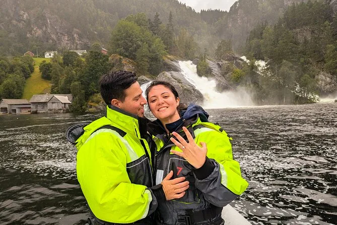 Du gleitest mit einem privaten Zodiac ab Bergen durch versteckte Fjorde, spürst den kalten Sprühnebel am Hesjedalsfossen, entdeckst Wikingertradition im Dorf Stamnes und fährst nach einem Spaziergang am Flussufer mit dem malerischen Zug zurück. Keine gewöhnliche Tour, sondern ein Tag, den du lange im Herzen behältst.