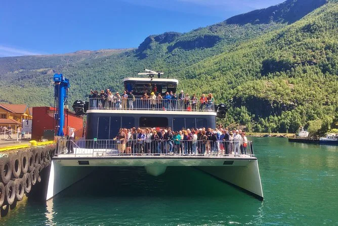 Eine Fjordkreuzfahrt von Gudvangen nach Flåm ist optional; Tickets können am Tag selbst oder im Voraus gekauft werden.