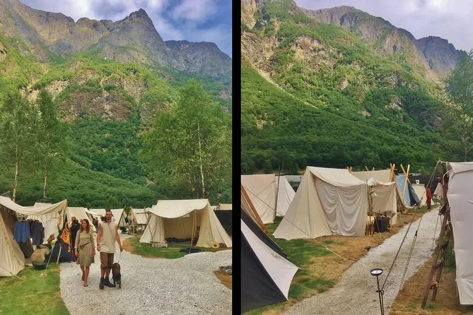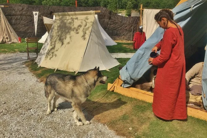 Du kannst Handwerkern bei der Arbeit zusehen, Souvenirs kaufen, Bogenschießen oder Axtwerfen ausprobieren und an Führungen durch das Dorf teilnehmen.