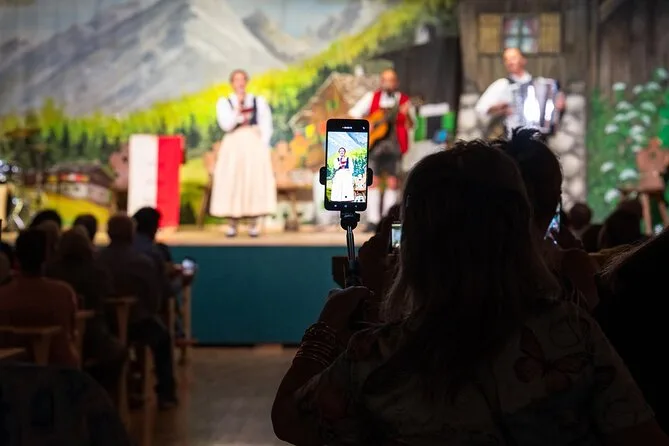 Unser „Guide“ des Abends, wenn man ihn so nennen will, war einer der Tänzer – er tauchte immer wieder zwischen den Auftritten auf, um auf Deutsch und Englisch zu erklären, was gerade passiert (manchmal sogar gleichzeitig). Es gab einen Schuhplattler, der erst unmöglich aussah, bis sie ihn wie aus dem Effeff beherrschten. Jemand neben uns versuchte beim Jodeln mitzusingen; alle lachten sich schlapp, sogar die Hälfte der Band. Wenn du überlegst, ein Ticket für die Tiroler Volksmusikshow in Innsbruck zu kaufen, sei dir sicher: Das ist alles andere als steif oder förmlich. Es ist laut, herzlich und herrlich chaotisch – genau so, wie man sich Tirol vorstellt.
