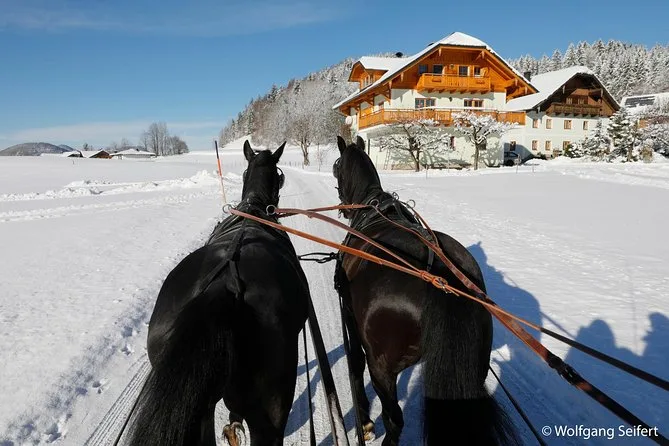 Die Pferdeschlittenfahrt dauert etwa 2 Stunden während des Tagesausflugs ab Salzburg.