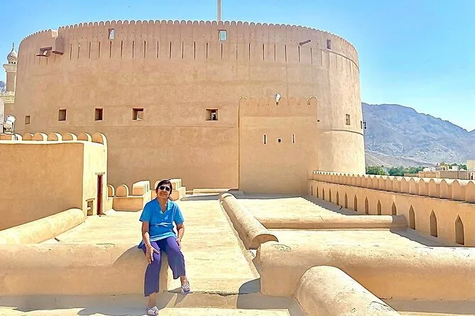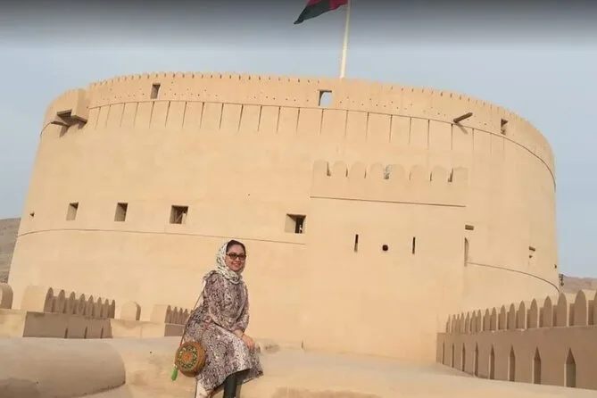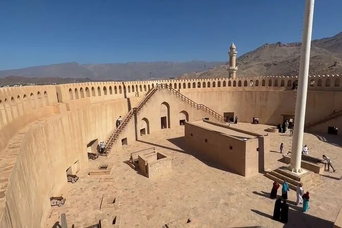 Als nächstes stand Nizwa auf dem Plan. Der Souk war schon am Vormittag voll in Betrieb – Händler riefen Preise für Silberschmuck und kleine Haufen Weihrauch aus. Nach ein bisschen Feilschen habe ich mir einen kleinen Khanjar-Dolch gekauft. Die Festung selbst ist beeindruckend groß; oben angekommen hatten wir einen tollen Blick über Dattelpalmen und Dächer. Der Eintritt kostet fünf Rial, und ehrlich gesagt lohnt sich das allein schon wegen der spannenden Geschichte, die unser Guide über Sultan Bin Saif Al Ya’rubi erzählte.