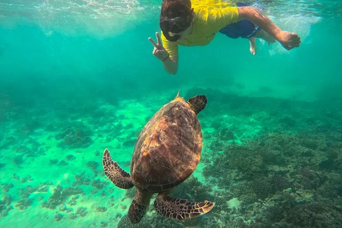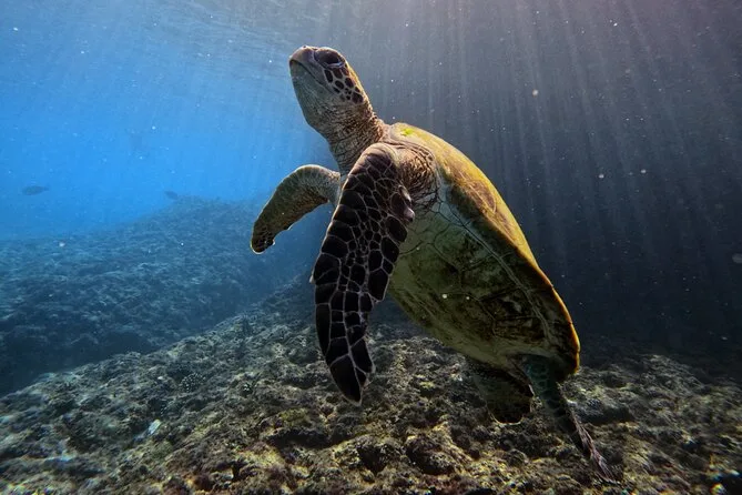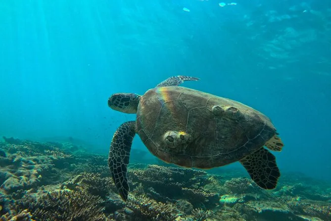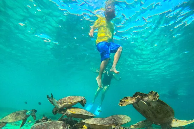 Die Chancen, Meeresschildkröten zu sehen, sind an mehreren Stellen sehr gut; Delfine können während der Bootsfahrt auftauchen.