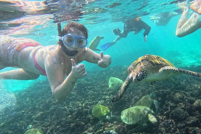 Die Tour umfasst drei verschiedene Schnorchelstopps rund um die Inseln.