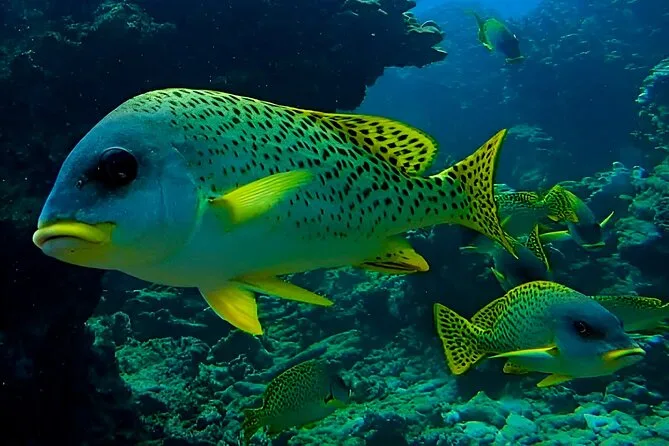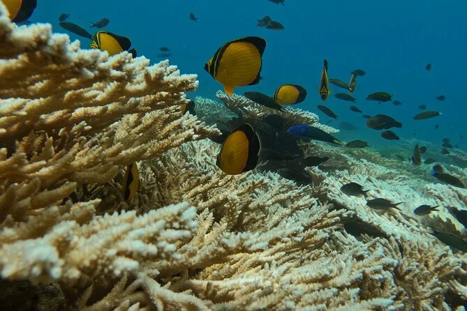 Dein Tag umfasst eine geführte Bootsfahrt vom Hafen Seeb in Muscat zu den Daymaniyat Inseln mit drei verschiedenen Schnorchelstopps. Die komplette Schnorchelausrüstung wird gestellt, ebenso Wasserflaschen, frisches Obst und ein Mittagessen an Bord, bevor es am Nachmittag zurückgeht.