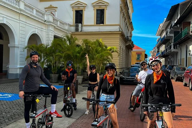 Du bekommst ein E-Bike und Helm gestellt, dazu Wasser für die Fahrt – alles begleitet von einem erfahrenen lokalen Guide, der jeden Geheimtipp und jede Geschichte in Panamas Straßen kennt.