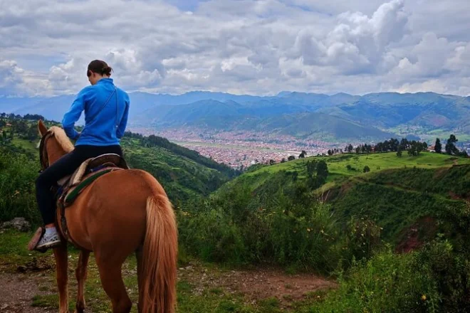 Dein Tag startet mit privatem Transfer von deiner Unterkunft in Cusco zum Startpunkt nahe Sacsayhuaman. Dazu gibt’s Wasserflaschen unterwegs, damit du keine extra Sachen mitnehmen musst, bevor es zurückgeht nach dem Ritt.