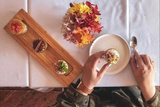Dein Tag beinhaltet den Hoteltransfer, alle Aktivitäten von Frühstück bis Dessert (inklusive praktischer Kurse), geführte Verkostungen auf Märkten und in Cafés in den besten Vierteln Limas, alkoholische Getränke wie Pisco Sours und peruanischen Naturwein, Snacks und komplette Mahlzeiten – alles begleitet von einem erfahrenen lokalen Guide, der dich am Ende sicher zurück ins Hotel bringt.