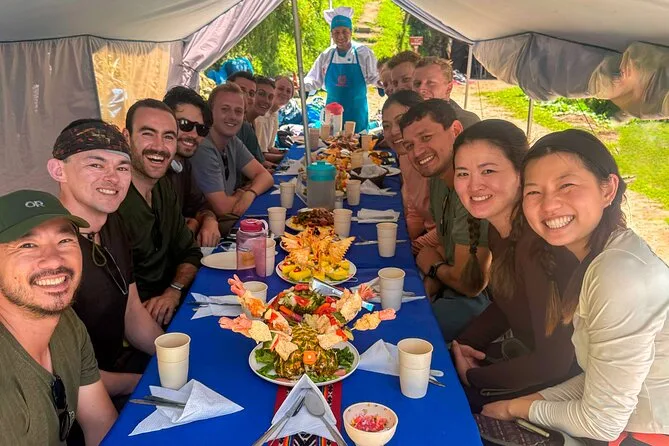 Du bekommst geräumige Zelte (geteilt), Isomatte, Kissen, Regenponcho, eine Tasche für persönliche Sachen und Träger-Service für dein Gepäck.