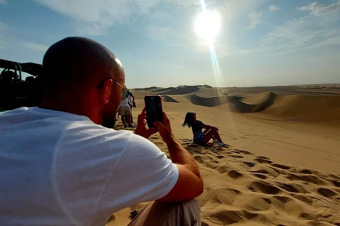 Am späten Nachmittag ging es weiter nach Huacachina. Die Sonne stand tief und tauchte alles in goldenes Licht. Die Buggys waren laut und anfangs etwas einschüchternd – mein Herz schlug schneller, als wir die Dünen hinauf und hinunter rasten. Überall flog Sand (Tuch oder Schal mitnehmen!), aber ich konnte vor Lachen kaum anhalten. Zum ersten Mal probierte ich Sandboarding; zweimal bin ich gestürzt, aber das war egal. Die Aussicht vom Dünenkamm – auf der einen Seite die Lagune, auf der anderen die endlose Wüste – ließ mich den Sand in den Schuhen vergessen. Wir machten ein paar Fotos, während der Himmel rosa wurde. So ein Tag bleibt einem ewig im Kopf.