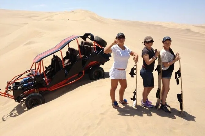 Buggys (tubuläre Fahrzeuge), Sandboarden auf den Dünen sowie Zeit zum Erkunden und Fotografieren der Oase.