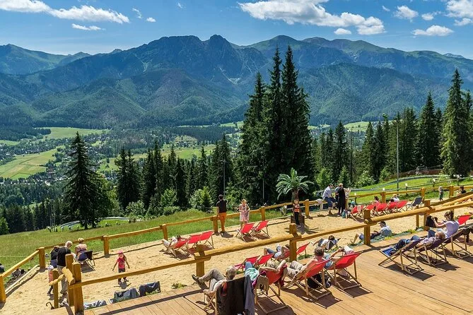 Mit der Seilbahn auf die Gubałówka für traumhafte Tatra-Blicke, oscypek Käse und Wodka in einer Hirtenhütte bei Chochołów probieren, die lebhafte Krupówki in Zakopane entdecken und anschließend stundenlang in den wohltuenden Thermalbädern mit Bergpanorama entspannen – inklusive Hoteltransfer und persönlicher Betreuung durch einen lokalen Guide.