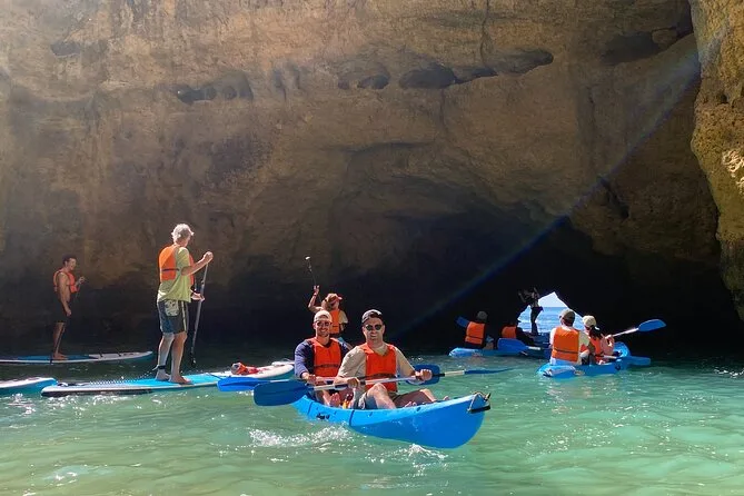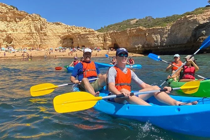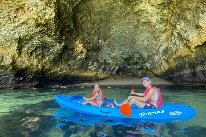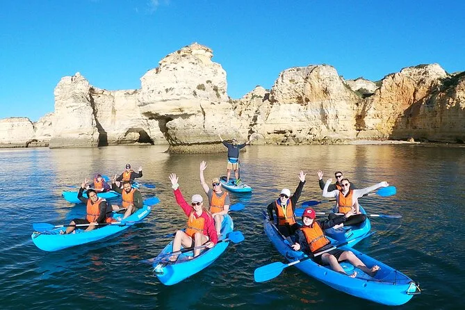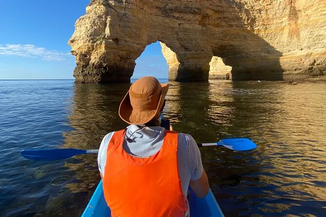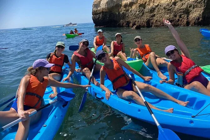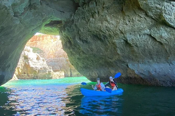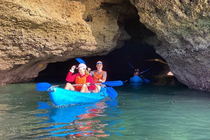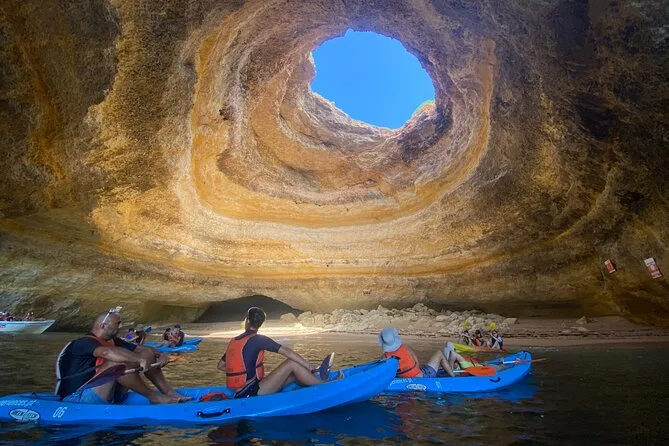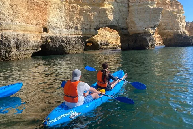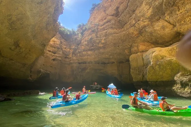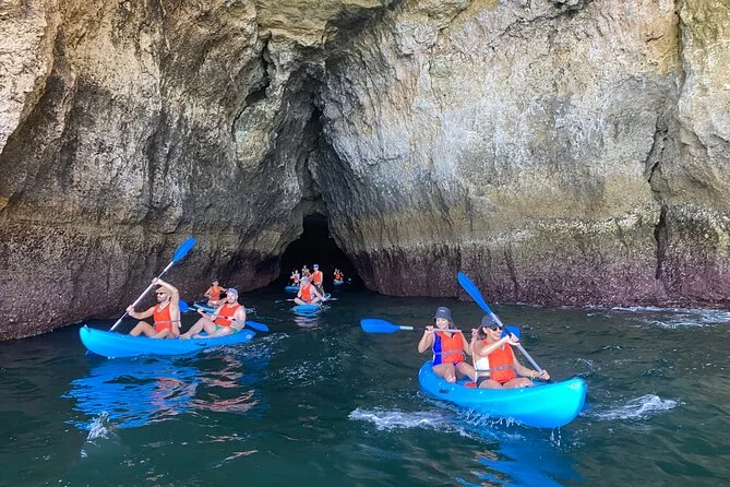 Dein Tag beinhaltet bequeme Kajaks mit Rückenlehnen, zertifizierte lokale Guides wie Bruno oder Ana, die dich zu versteckten Ecken der Algarve-Küste führen, wasserdichte Handytaschen, sichere Aufbewahrung für Schuhe und Rucksäcke an der Basis, Schwimmwesten für alle, sowie kostenlose 8k GoPro-Fotos und Videos von deinem Abenteuer in der Benagil Höhle, bevor ihr gemeinsam zurückkehrt.