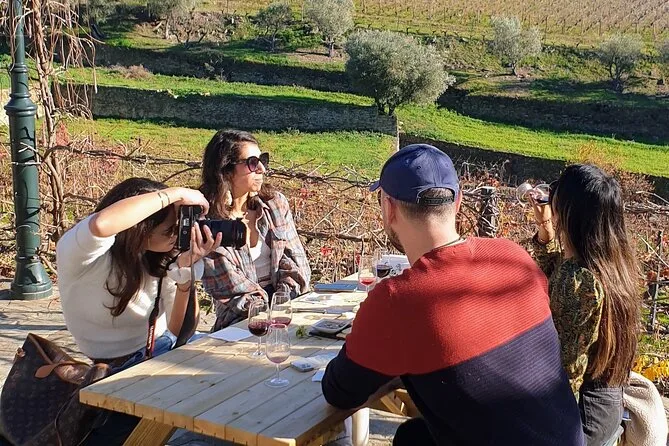 Dein Tag umfasst Abholung und Rückfahrt in Porto mit einem komfortablen Minivan, geführte Besuche in zwei Premium-Weingütern im Douro mit mehreren Verkostungen (inklusive preisgekrönter Portweine), eine einstündige Panorama-Bootsfahrt auf einem Rabelo mit Vinho Verde an Bord, ein all-inclusive regionales Mittagessen mit unbegrenztem DOC-Wein sowie Wasser oder Saft, eine Gourmet-Olivenölverkostung, viele Fotomöglichkeiten an Aussichtspunkten entlang der N222 – und vor der Rückfahrt am Abend gibt es sogar eine Flasche lokalen Wein als Geschenk pro Buchung.
