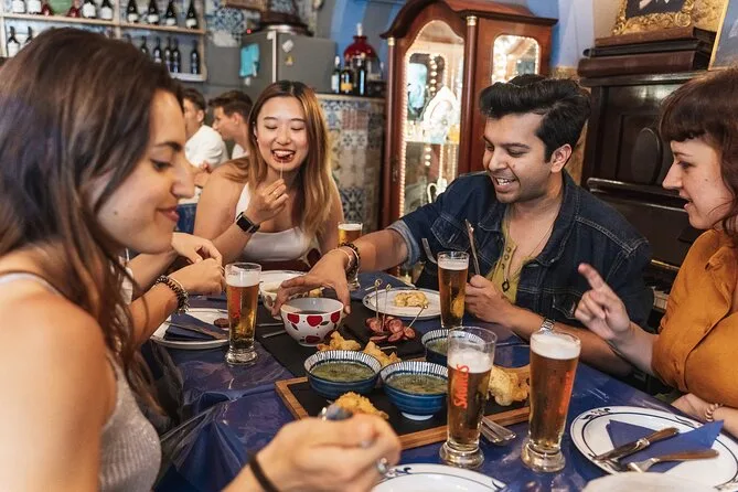 Dein Abend beinhaltet vorab reservierte Plätze in den besten Lokalen der Baixa, Verkostungen von drei traditionellen herzhaften Gerichten (darunter Presunto und Chouriço), vier ikonische portugiesische Getränke wie Ginjinha und Vinho Verde (oder alkoholfreie Alternativen) sowie ein süßes Dessert zum Abschluss. Geführt wirst du von einem erfahrenen Local, der unterwegs Geschichten und Tipps teilt, bevor du in die Nacht entlassen wirst.