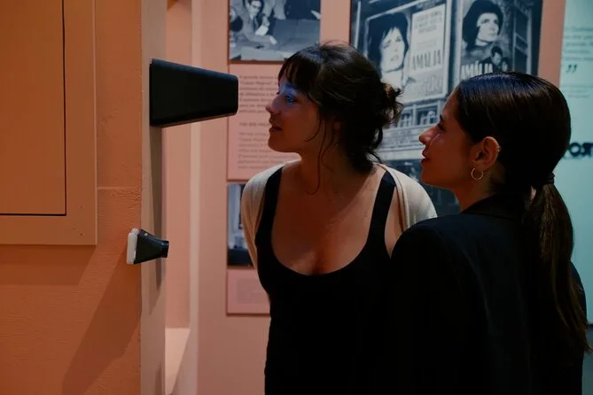 Bevor ich überhaupt merkte, dass es losging, reichte mir jemand Kopfhörer – solche wie im Museum, doch hier war der Klang voller alter Fado-Melodien und Straßenlärm aus Lissabons Vergangenheit. Unsere Führerin Joana lächelte, als sie sah, wie ich im ersten Raum zögerte. „Keine Sorge, du wirst sie spüren“, sagte sie, und tatsächlich hatte sie recht. Ein leichter Duft von wachsartigen Blumen (vielleicht Nelken?) und etwas wie altes Holzpolitur lag in der Luft. An den Wänden flimmerten Schwarz-Weiß-Filme, Amálias Stimme erfüllte den ganzen Raum, nicht nur meine Ohren.