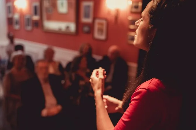 Erlebe einen intimen Abend in Lissabon mit live Fado – ohne Mikrofone, nur reine Stimmen und Gitarre direkt vor dir. Genieße ein Glas Portwein, während lokale Sänger ihre Geschichten durch die Musik erzählen. Mit spannenden Einblicken vom Guide und dieser besonderen Nähe wird es ein Abend, der lange nachklingt.