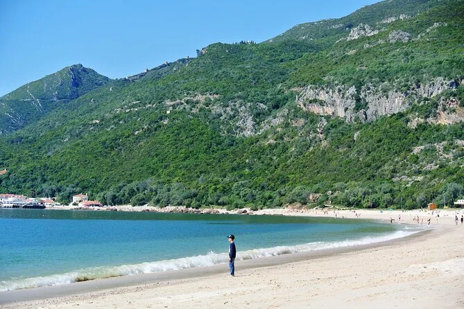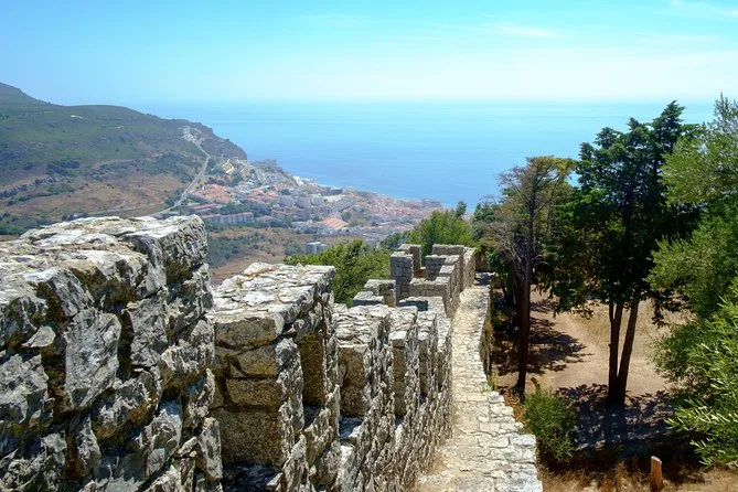 Überquere Lissabons berühmte Brücke und tauche ein in eine andere Welt: Steh auf windumtosten Klippen am Cabo Espichel, schlendere durch Sesimbras Fischerörtchen, erklimme eine alte Burg und genieße zum Abschluss fünf lokale Weine mit echten Familiengeschichten in den Weinbergen der Arrábida.