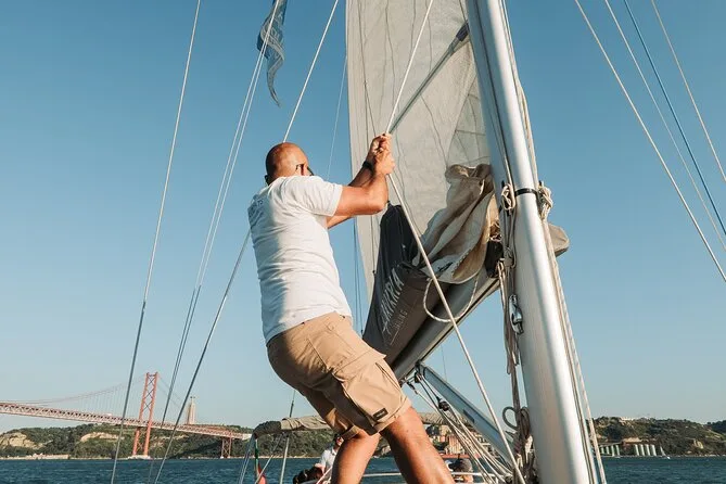 Segle bei Sonnenuntergang auf dem Tejo mit einem lokalen Guide, der spannende Geschichten und Live-Kommentare liefert. Genieße portugiesischen Wein oder Bier, während du an Sehenswürdigkeiten wie dem Belém-Turm und dem Handelsplatz vorbeifährst. Das ruhige Dahingleiten, die Lichter der Stadt und das Lachen an Bord machen diese Abendfahrt unvergesslich.