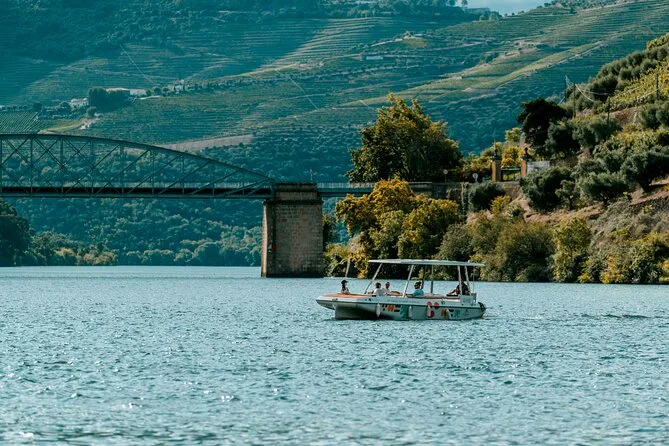 Solarboot-Tour in Pinhão mit Blick auf Weinberge und lokale Weine