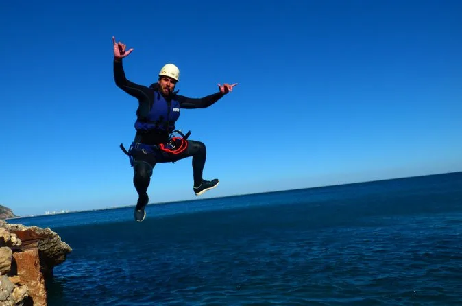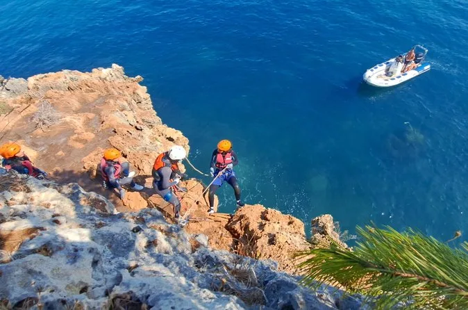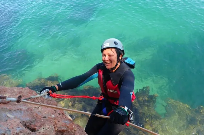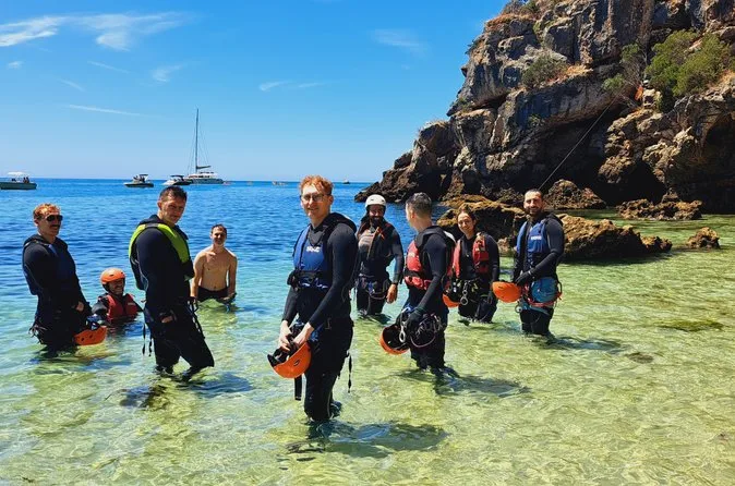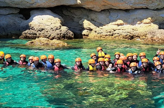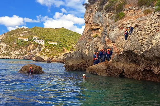 Eine geführte Tour, die Klippenspringen, Klettern, Abseilen, Schwimmen, Höhlenentdeckung, Rutschen und Wandern entlang der Küste der Serra da Arrábida verbindet.