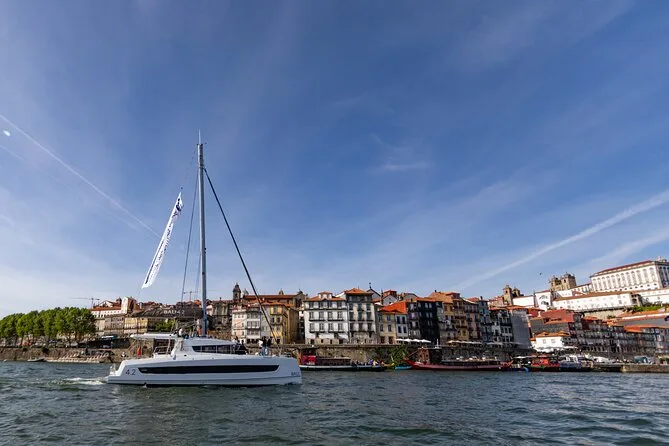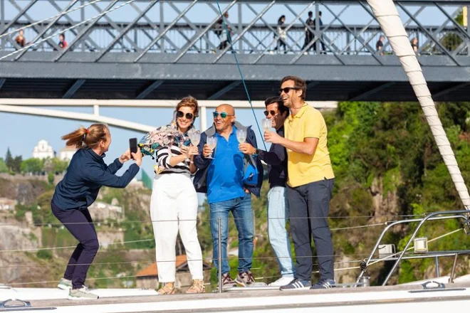 Dein Tag beginnt mit dem Einstieg an der Douro Marina, wo dich die lokale Crew auf ein 15-Meter-Segelboot oder einen Katamaran begleitet. An Bord gibt es WLAN und ein Glas Portwein, während du an Highlights wie der Dom-Luís-Brücke und der Uferpromenade von Gaia vorbeisegelst. Nach etwa zwei Stunden endet die Tour wieder an der Marina.