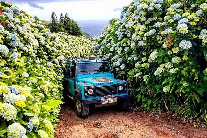 Dein Tag beinhaltet die Abholung von deiner Unterkunft in Ponta Delgada (einfach bei der Buchung angeben), den Transport im Jeep oder 4x4 SUV je nach Verfügbarkeit, den Eintritt zu Aussichtspunkten rund um die Krater von Sete Cidades und Lagoa do Fogo sowie ein gemütliches Mittagessen mit Getränken wie Wein oder Bier, bevor es am Nachmittag zurückgeht.
