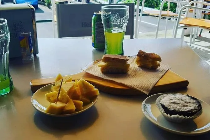 Ein festes Mittagessen ist nicht enthalten; du hast etwa eine Stunde freie Zeit zum Essen in Praia Vitória.